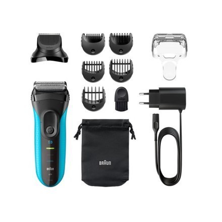Braun Shaver with trimmer Series 3 Shave&Style 3010BT Cordless, Charging time 1 h, Operating time 45 min, Wet use, NiMH, Number of shaver heads/blades 2, Black/Blue