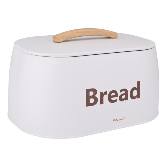 Chlebak metalowy biały z drewnianym uchwytem KINGHOFF KH-1947 - styl i porządek w kuchni