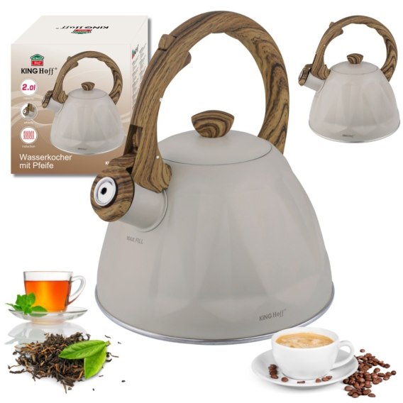 • CZAJNIK 2L Z GWIZDKIEM KINGHOFF KH-1998 BEŻOWY MAT