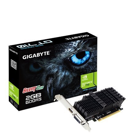 Gigabyte Low Profile NVIDIA, 2 GB, GeForce GT 710, GDDR5, PCI Express 2.0, Processor frequency 954 MHz, HDMI ports quantity 1, Memory clock speed 5010 MHz