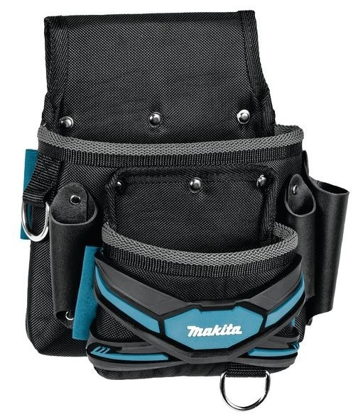 Dwie duże przegrody na narzędzia i sprzęt, trzy skórzane uchwyty na narzędzia, cztery elastyczne paski np. na szczypce oraz dwa D-ringi do mocowania breloków i karabińczyków.