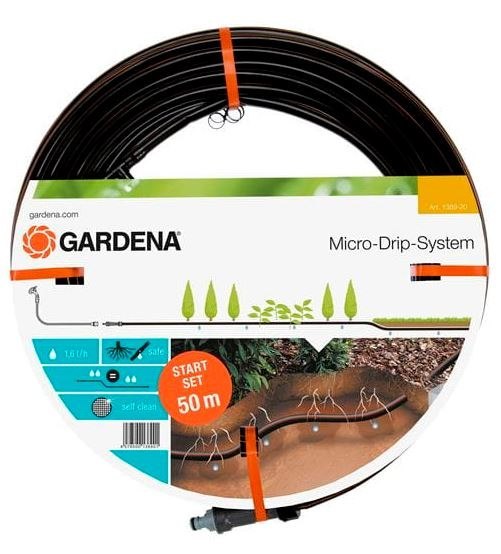 W celu zapewnienia równomiernego nawadniania ciśnienie wody jest takie samo w każdym punkcie linii kroplującej. Linia kroplująca jest dostarczana w gotowym do podłączenia komplecie zawierającym reduktor ciśnienia 1000, 1 korek i 1 rozdzielacz T. Jej długość wynosi 50 metrów.