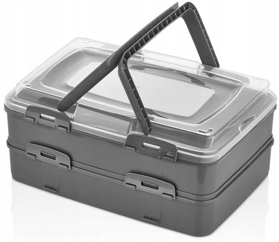 POJEMNIK BOX NA CIASTO - PODWÓJNY SZARY DO PRZENOSZENIA