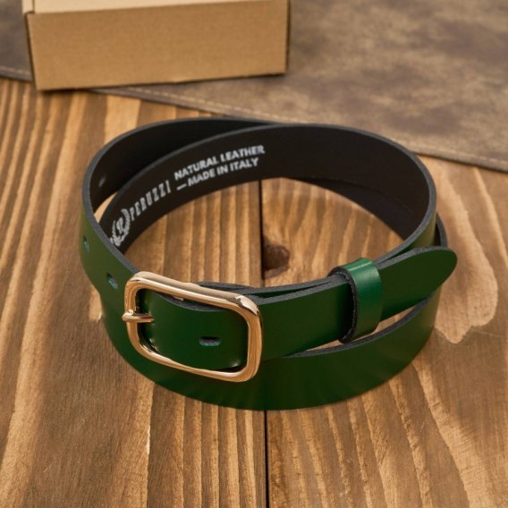 Pasek damski skórzany 110 cm do spodni wąski zielony ze złotą klamrą Paolo Peruzzi PG-11-GZ-110