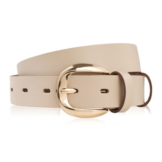 Pasek damski skórzany do spodni 110 cm wąski beżowy licowy złota klamra PG-14-BZ-110