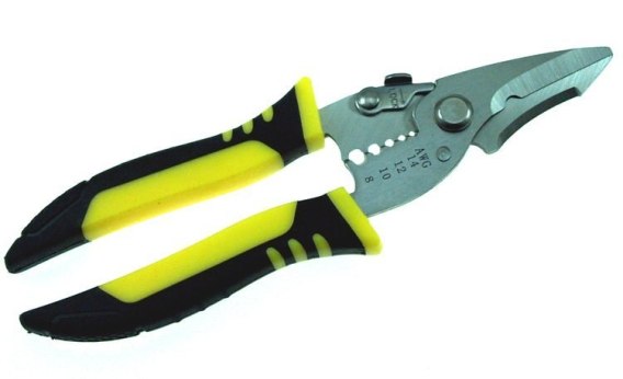 Profesjonalne szczypce do zdejmowania izolacji oraz cięcia kabli z dodatkowym ostrzem bocznym.