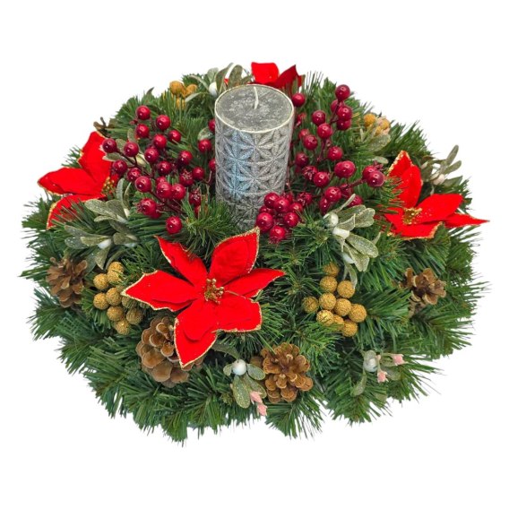 Szukasz dekoracji, która od razu wprowadzi w świąteczny nastrój, doda elegancji stołowi i zachwyci gości? Oto unikatowy stroik handmade, stworzony w polskiej pracowni florystyki. Każdy egzemplarz powstaje ręcznie - z dbałością o każdy detal, dzięki czemu masz pewność, że otrzymujesz produkt wyjątkowy, jedyny w swoim rodzaju.