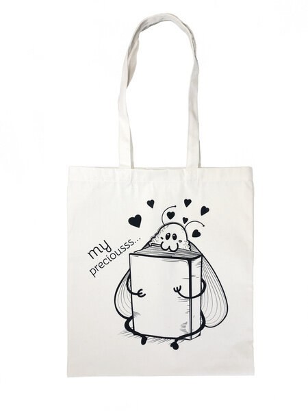 Bawełniana torba z nadrukiem. Idealnie sprawdzi się na zakupy, do biblioteki czy pracy. Motyw mola ucieszy każdego miłośnika czytania książek!