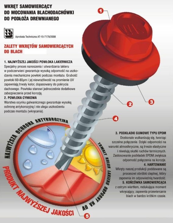 Wkręt samowiercący do mocowania blachodachówki w podłożu drewnianym ,