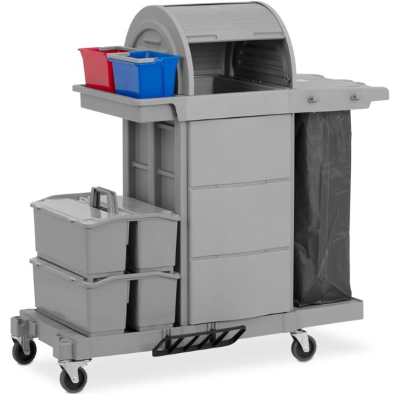 Wózek hotelowy do sprzątania ze schowkiem i workiem 2 wiadrami 128 x 62.5 x 133 cm