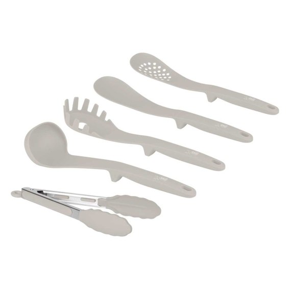 5 elementowy zestaw nylonowych przyborów kuchennych firmy BERLINGER HAUS z linii Sahara Collection. Przybory polecane szczególnie do naczyń z powłokami ceramicznymi i teflonowymi. Materiał z którego są wykonane nie rysuje powierzchni naczyń. Jest odporny na wysoką temperaturę do 210 stopni C. Posiada szczególne właściwości antybakteryjne.