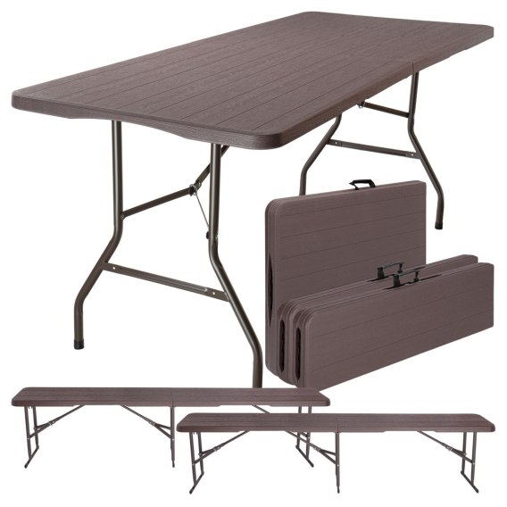 Zestaw cateringowy Woodland Brown stół + 2 ławki